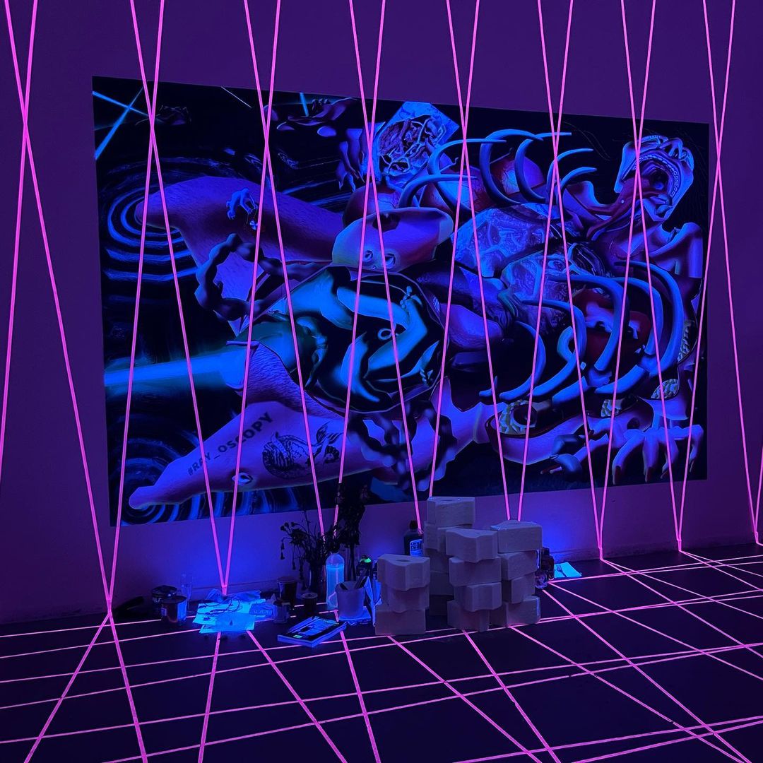 The idea of this space is to overwhelm the visitor with the beauty and power of technology’s impact (sound, light…) on our senses, but also see how and why we are drawn to potentially self-destructive artificial stimulation.